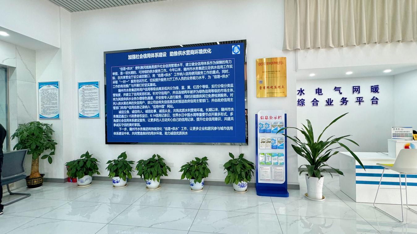 隨州水務集團結合“世界水日”“中國水周”等重要節(jié)點,開展一系列供水誠信服務進社區(qū)宣傳活動,通過“水電氣”共享營業(yè)廳屏幕滾動播放宣傳視頻,還利用“隨州水務”微信公眾號、官方網(wǎng)站和新媒體平臺等各類宣傳途徑,宣傳供水信用服務體系建設,為推動供水信用體系建設落地落實打下堅實基礎。