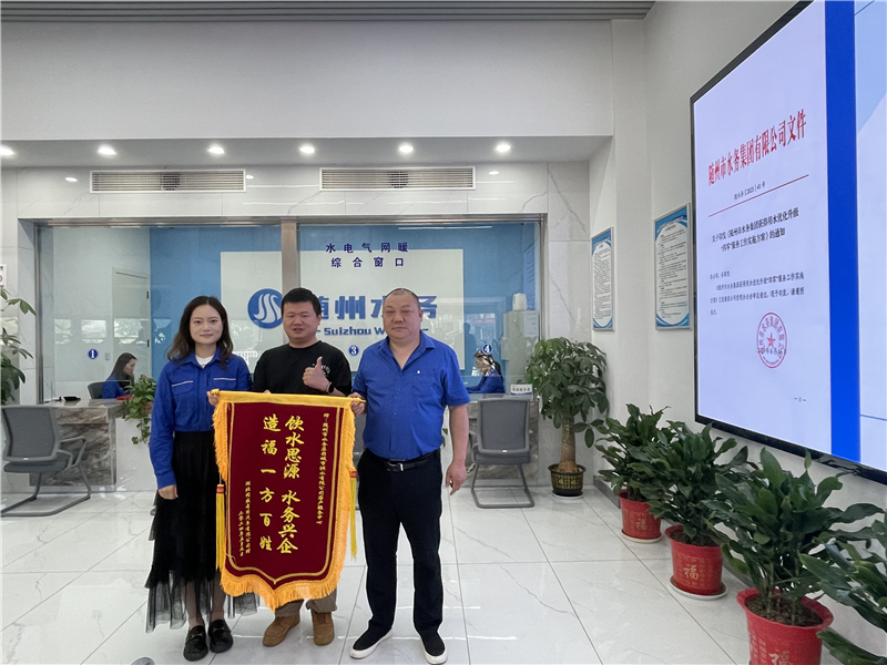 “感謝你們的及時(shí)檢測(cè),為我們公司解決了難題?!?月10日,隨州市水務(wù)集團(tuán)收到了來自湖北同威專用汽車有限公司贈(zèng)送的一面錦旗。這面錦旗上書:“飲水思源、水務(wù)興企、造福一方百姓”,充分展現(xiàn)了企業(yè)用戶對(duì)水務(wù)集團(tuán)全心全意為民服務(wù)的感激之情。