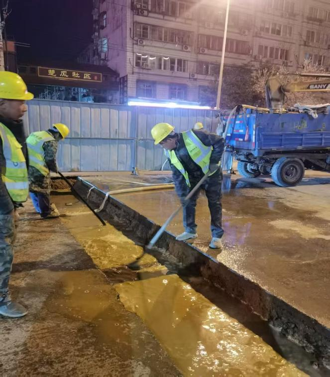 施工員和安全員組成的黨員攻堅組連續(xù)作戰(zhàn)30個小時,安全督導員嚴格監(jiān)測,施工噪音始終控制在55分貝以下,揚塵數(shù)值較常規(guī)施工降低40%,真正實現(xiàn)“無聲守護”。技術團隊創(chuàng)新應用管道非開挖修復技術,將施工面壓縮至傳統(tǒng)工藝的1/3。