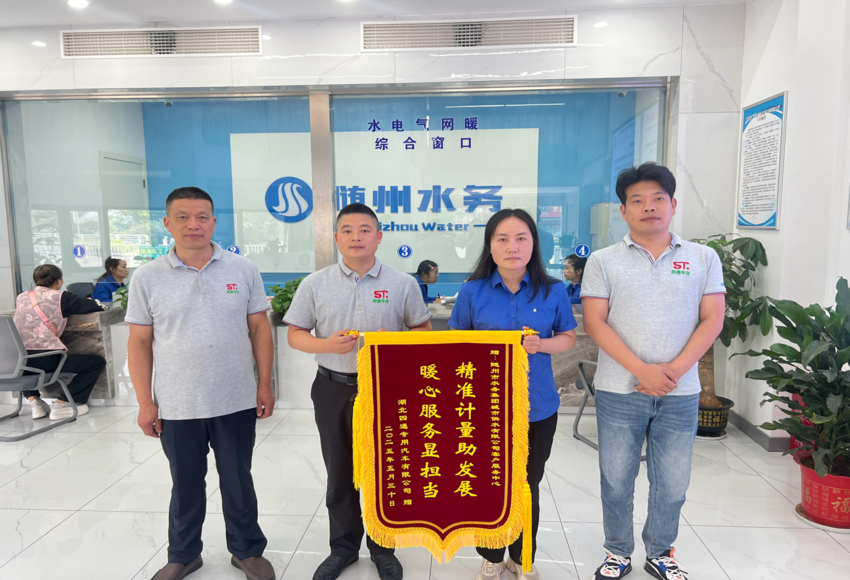 “精準(zhǔn)計(jì)量助發(fā)展,暖心服務(wù)顯擔(dān)當(dāng)”,6月5日,一面鮮紅的錦旗被鄭重地送到隨州市水務(wù)集團(tuán)城市供水有限公司客戶服務(wù)中心。湖北四通專用汽車有限公司總經(jīng)理帶隊(duì)專程致謝,對(duì)公司免費(fèi)提供的水表檢定服務(wù)給予高度贊揚(yáng),表達(dá)誠(chéng)摯謝意。這面錦旗不僅是企業(yè)對(duì)隨州水務(wù)優(yōu)質(zhì)服務(wù)的認(rèn)可,更是隨州水務(wù)以 “五免五心” 惠企政策為企業(yè)發(fā)展助力的生動(dòng)體現(xiàn)。