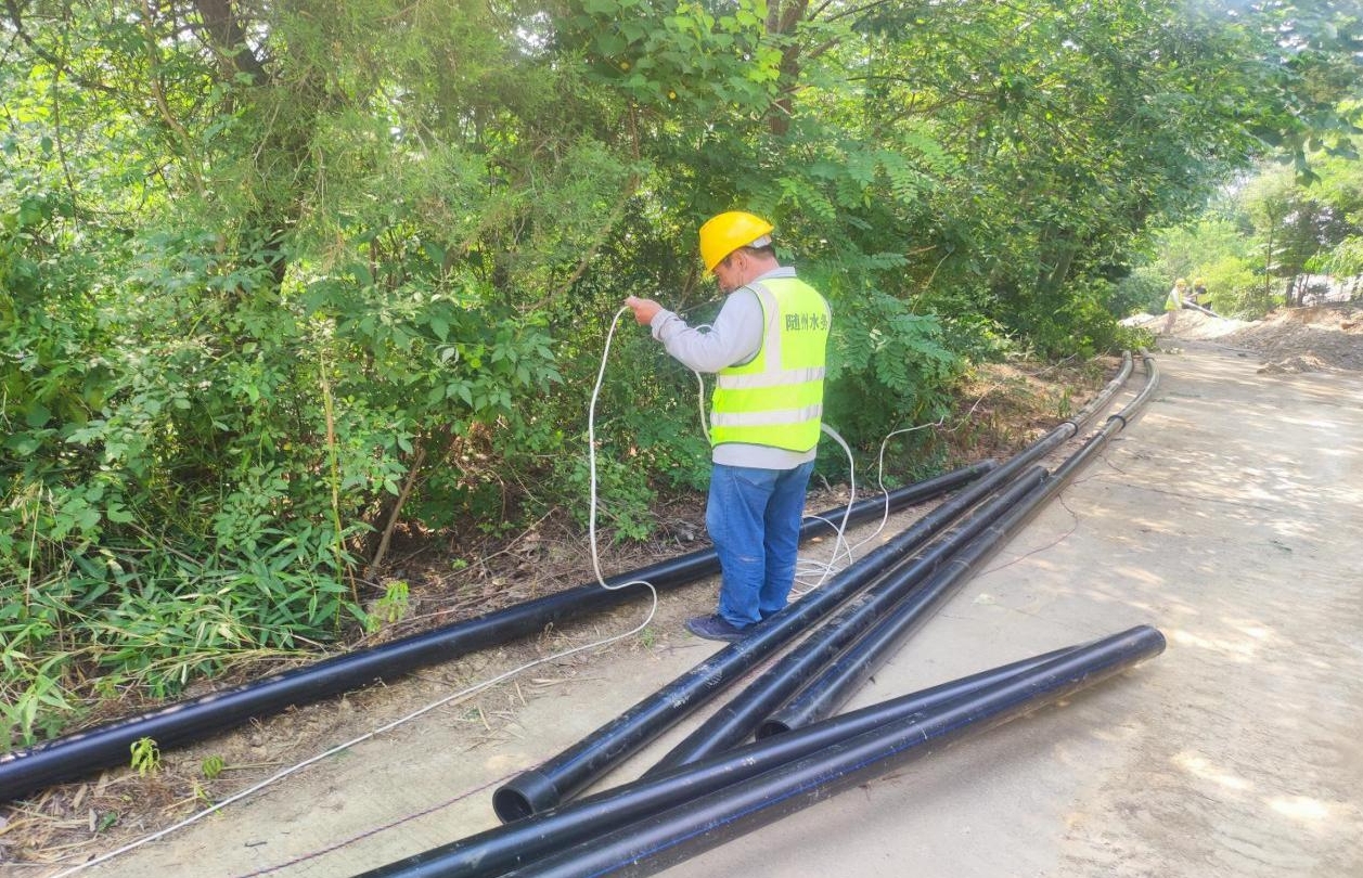 十二天跑出“加速度”,精細(xì)施工彰顯溫度。工程推進(jìn)中面臨了雙重挑戰(zhàn):一是管網(wǎng)需沿編鐘大道西側(cè)鋪設(shè),既要保證質(zhì)量,又要最大限度減少破壞;二是該地段位于城鄉(xiāng)結(jié)合部,需兼顧交通疏導(dǎo)與物料規(guī)范堆放。項(xiàng)目團(tuán)隊創(chuàng)新采用“早挖、午鋪、晚修”的緊湊施工模式——清晨開挖溝槽,午后完成DN110PE管材鋪設(shè),夜間即恢復(fù)路面,嚴(yán)格實(shí)現(xiàn)“施工不過夜、出行不影響”。同時配備揚(yáng)塵監(jiān)測與降噪設(shè)備,全方位打造綠色文明施工環(huán)境,細(xì)節(jié)之處盡顯為民溫度。
